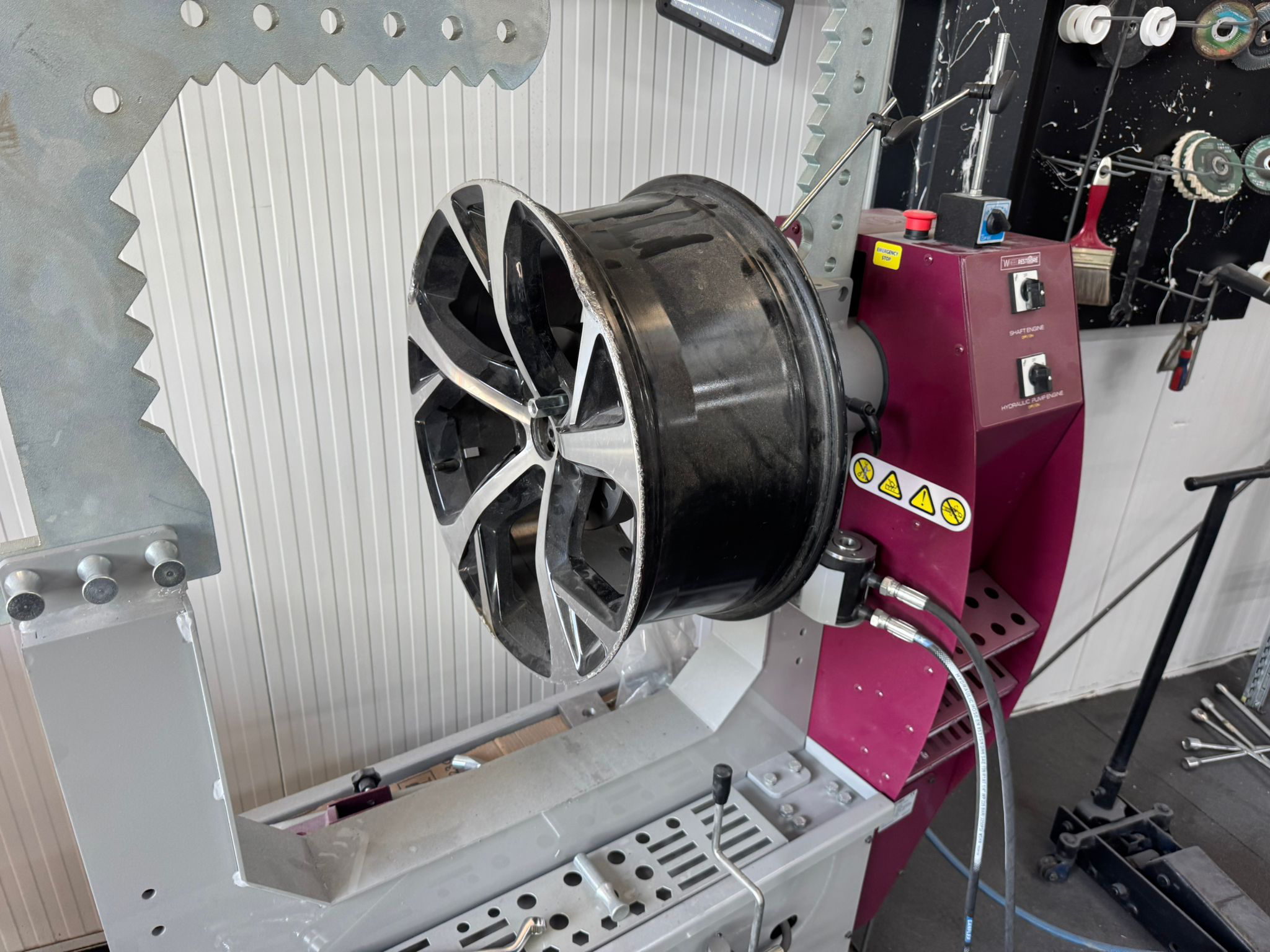 U našoj radionici koristimo Alloy Wheel Straightener od renomiranog proizvođača HBC System – specijalizirani uređaj za brzo i sigurno ispravljanje deformacija svih vrsta aluminijskih naplataka.